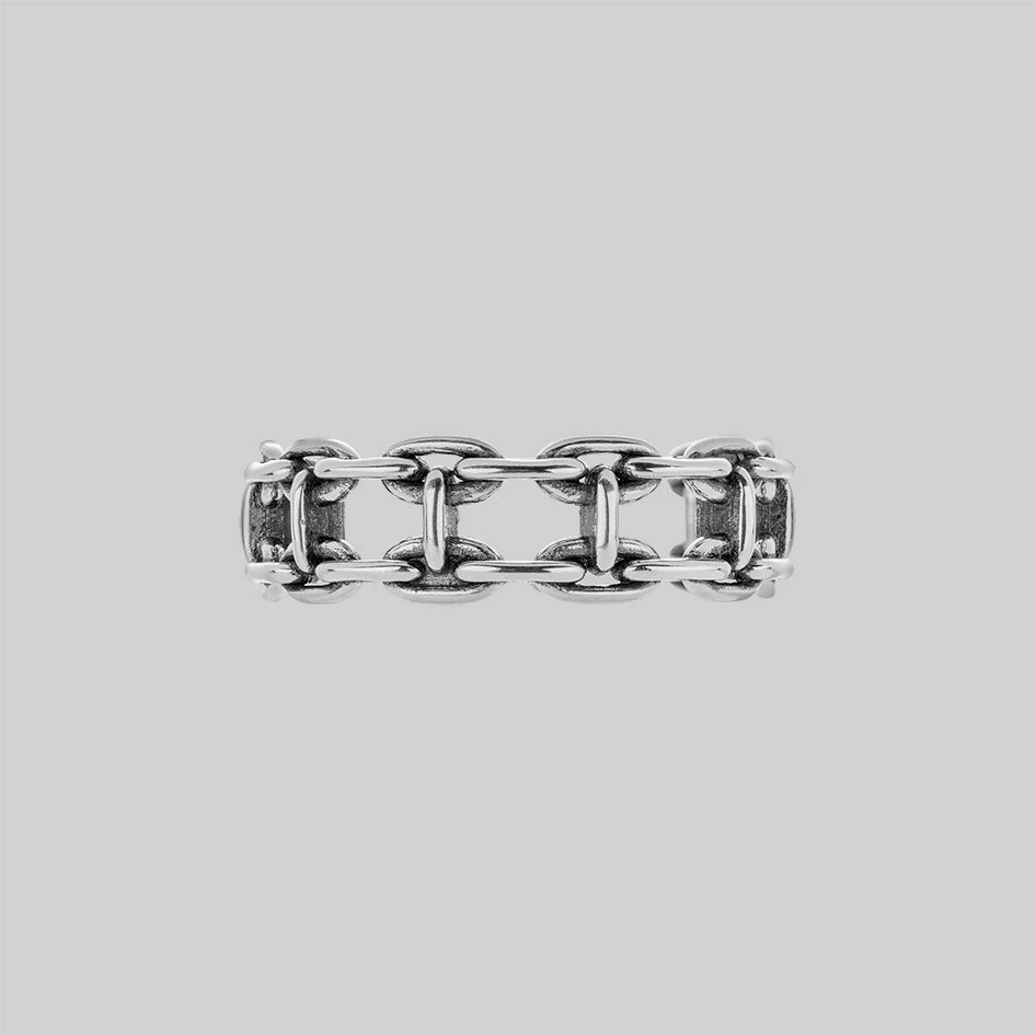 A nostalgic nod to the 90s. Stack the double chunky chain ring with other rings for an undeniably chic look.