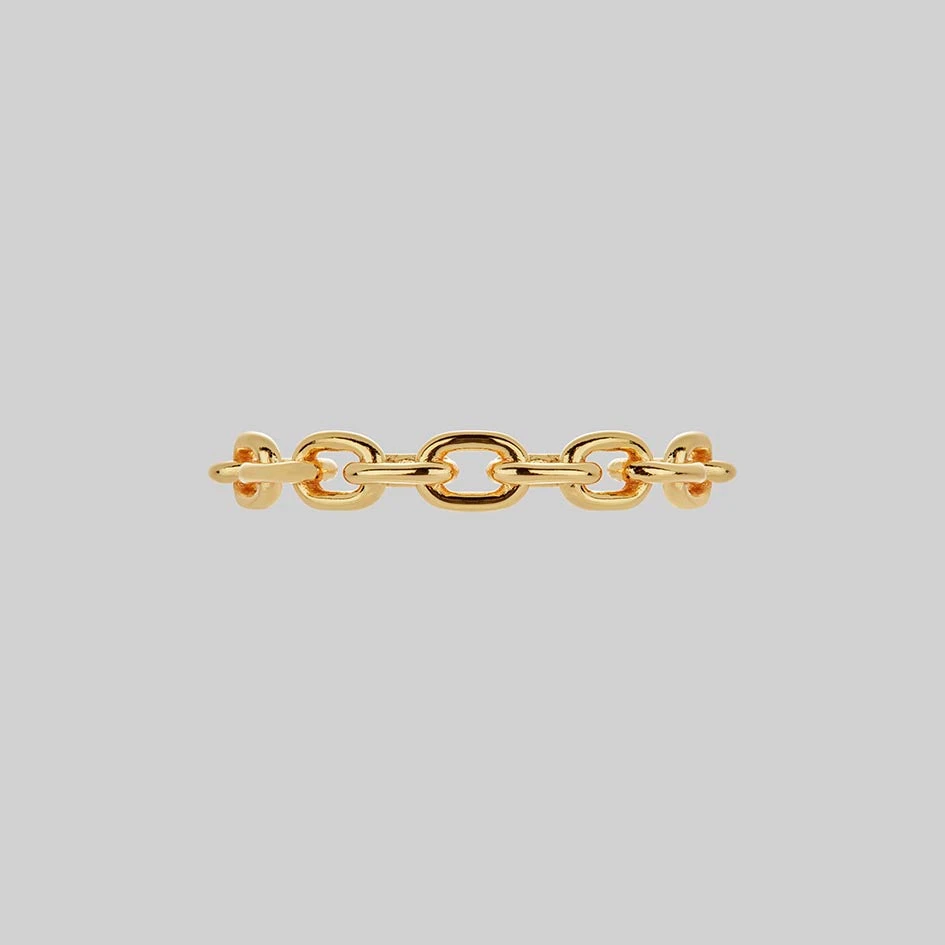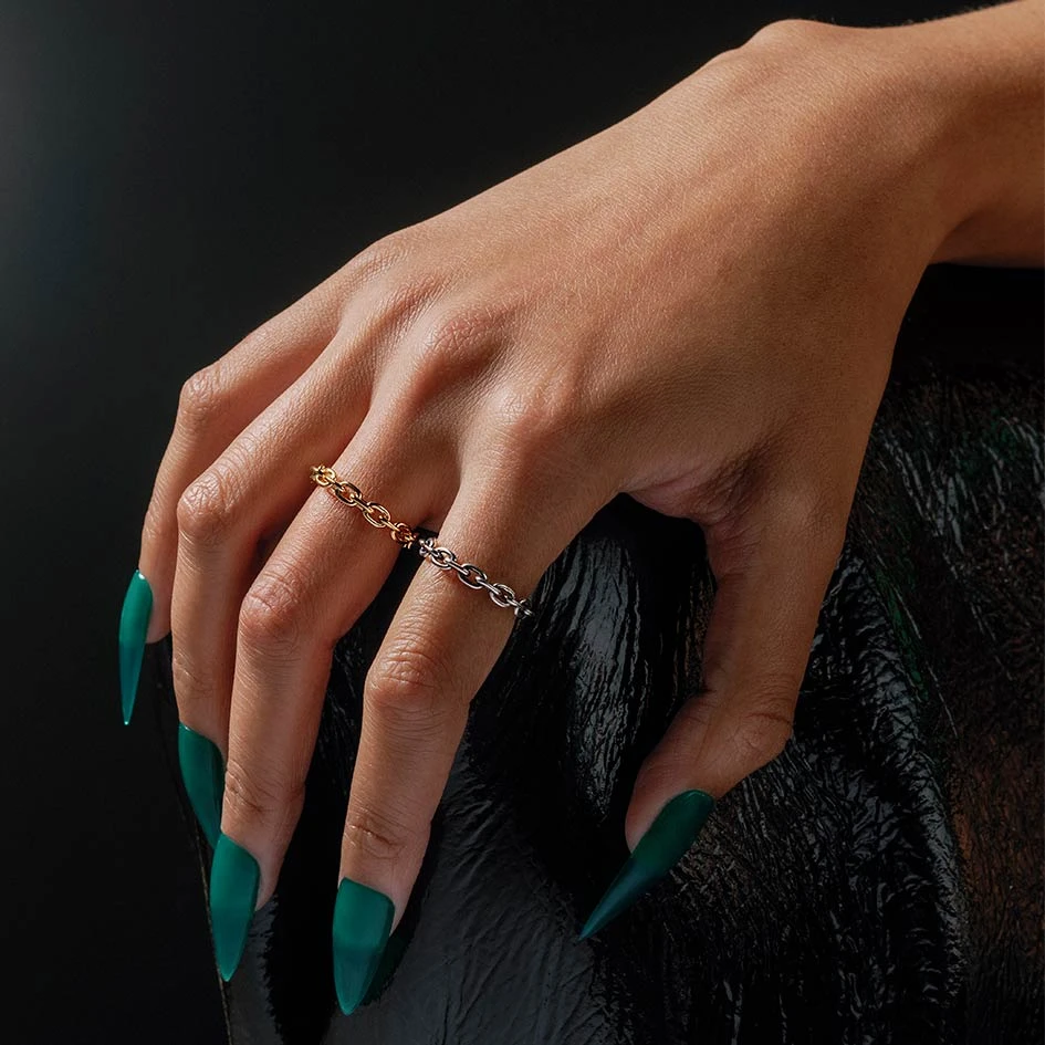 A nostalgic nod to the 90s. Stack the single chunky chain ring with other rings for an undeniably chic look.