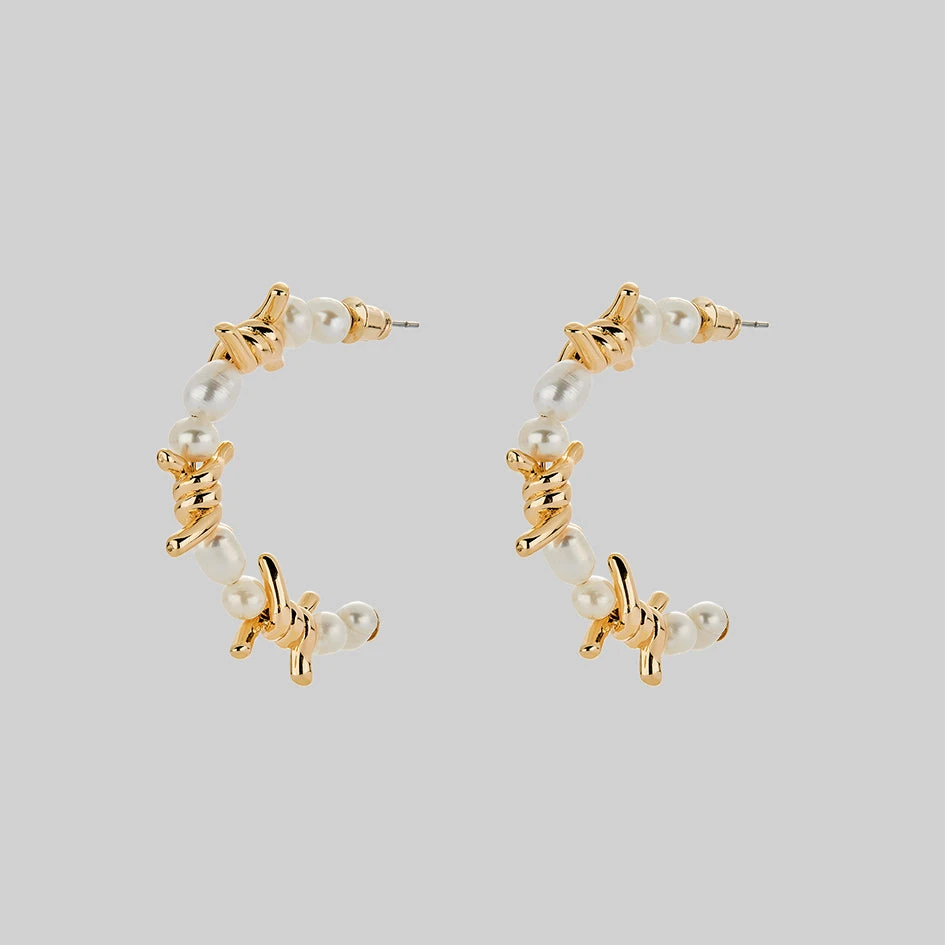 Lustrous Freshwater Pearls contrasted with Barbed Wire beads. Add an edge to any outfit with these standout earrings.