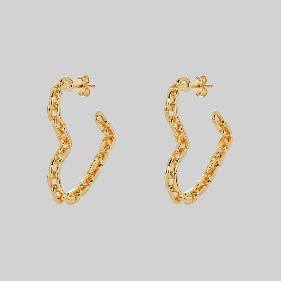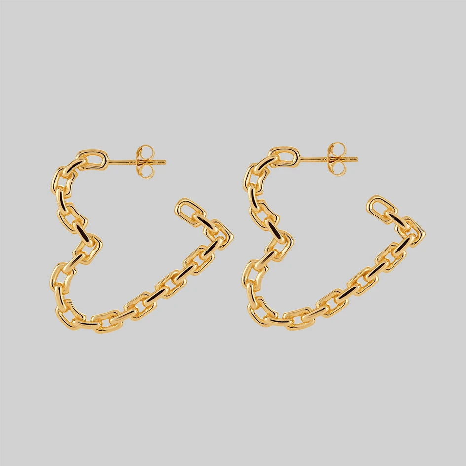 The links of love. Chain link heart hoops, a nostalgic nod to the 90s with a modern twist.